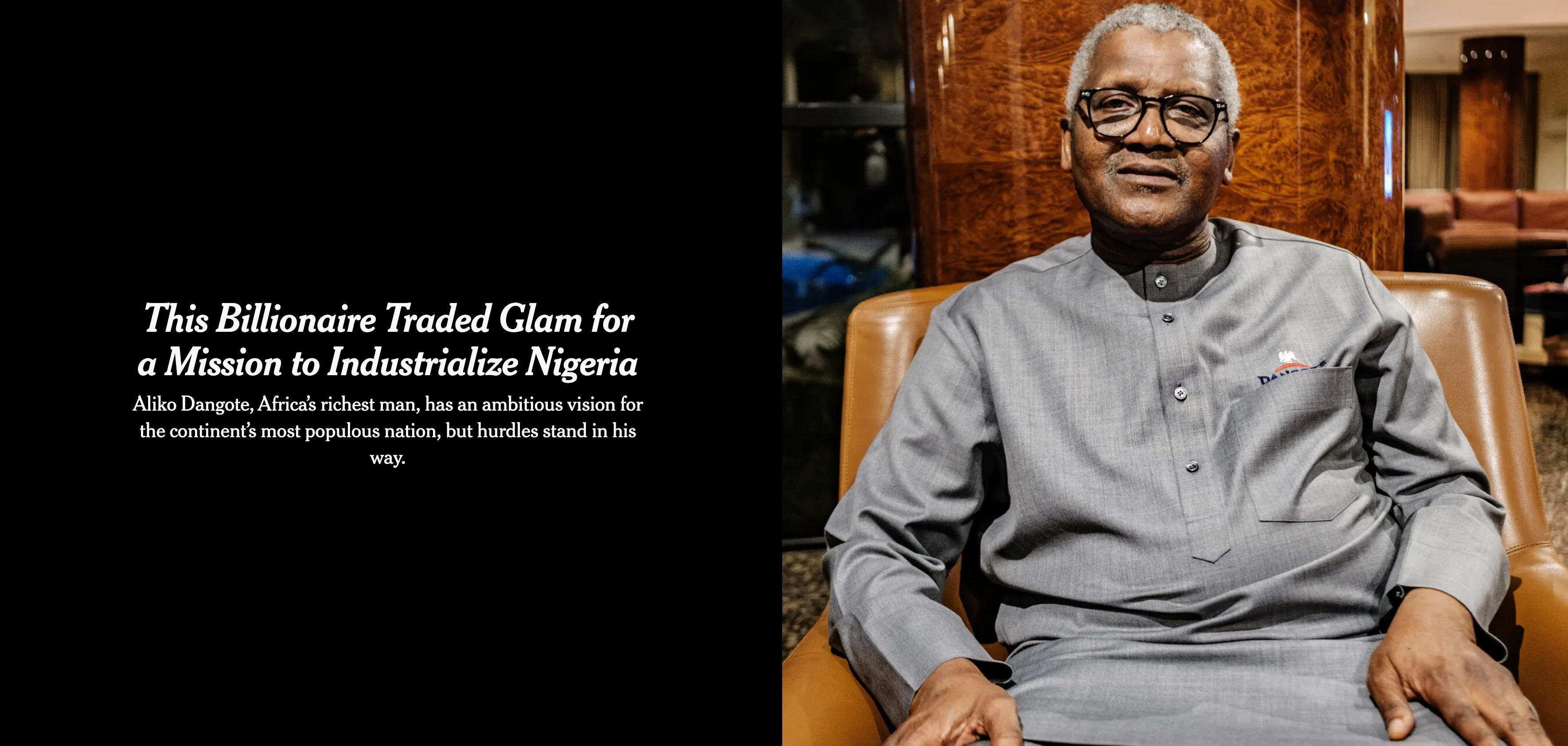 The New York Times has published a new feature on Aliko Dangote, and I will confess it caught me off guard. Not because the subject is unworthy of attention, but because the piece is, on closer inspection, a largely unnecessary one - and a telling illustration of the perils of Dangote coverage, where his word is received rather than examined, and where the most basic checks appear to have gone unmade.