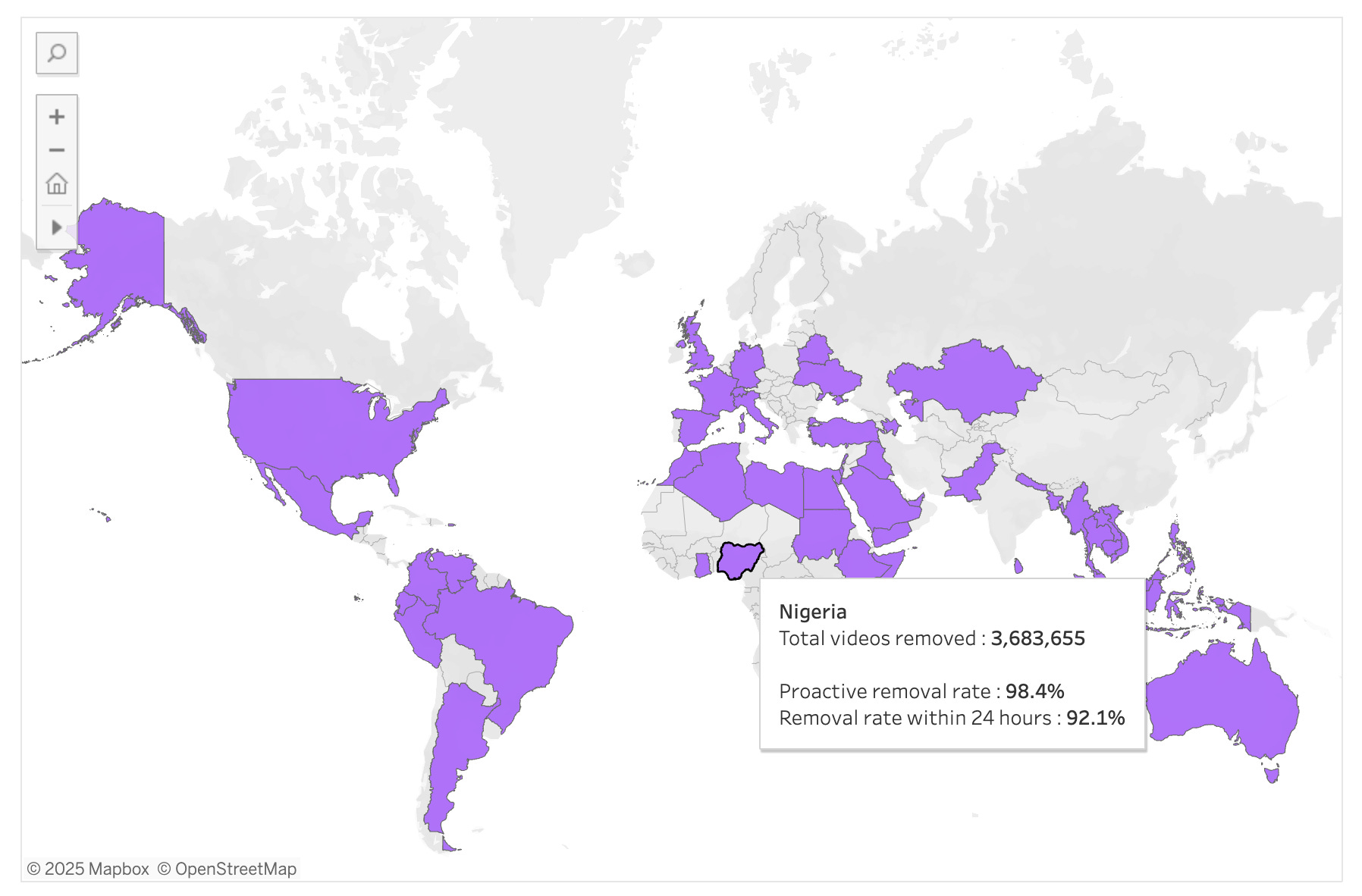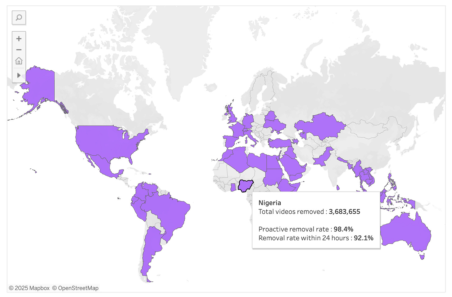In the first three months of this year, over 99% of violating content was removed before someone reported it to us, and over 90% was removed before gaining any views. The vast majority of violations (94%) were removed within 24 hours. This was also a quarter where automated moderation technologies removed more violative content than ever—over 87% of all video removals. In addition, TikTok's moderation technologies helped identify violative livestreamed content faster and more consistently. Over 19M LIVEs were stopped this quarter, a 50% increase from the previous quarter. At the same time, we continued to prioritize moderation accuracy, with the number of appeals remaining steady amid the increase in automated moderation.
