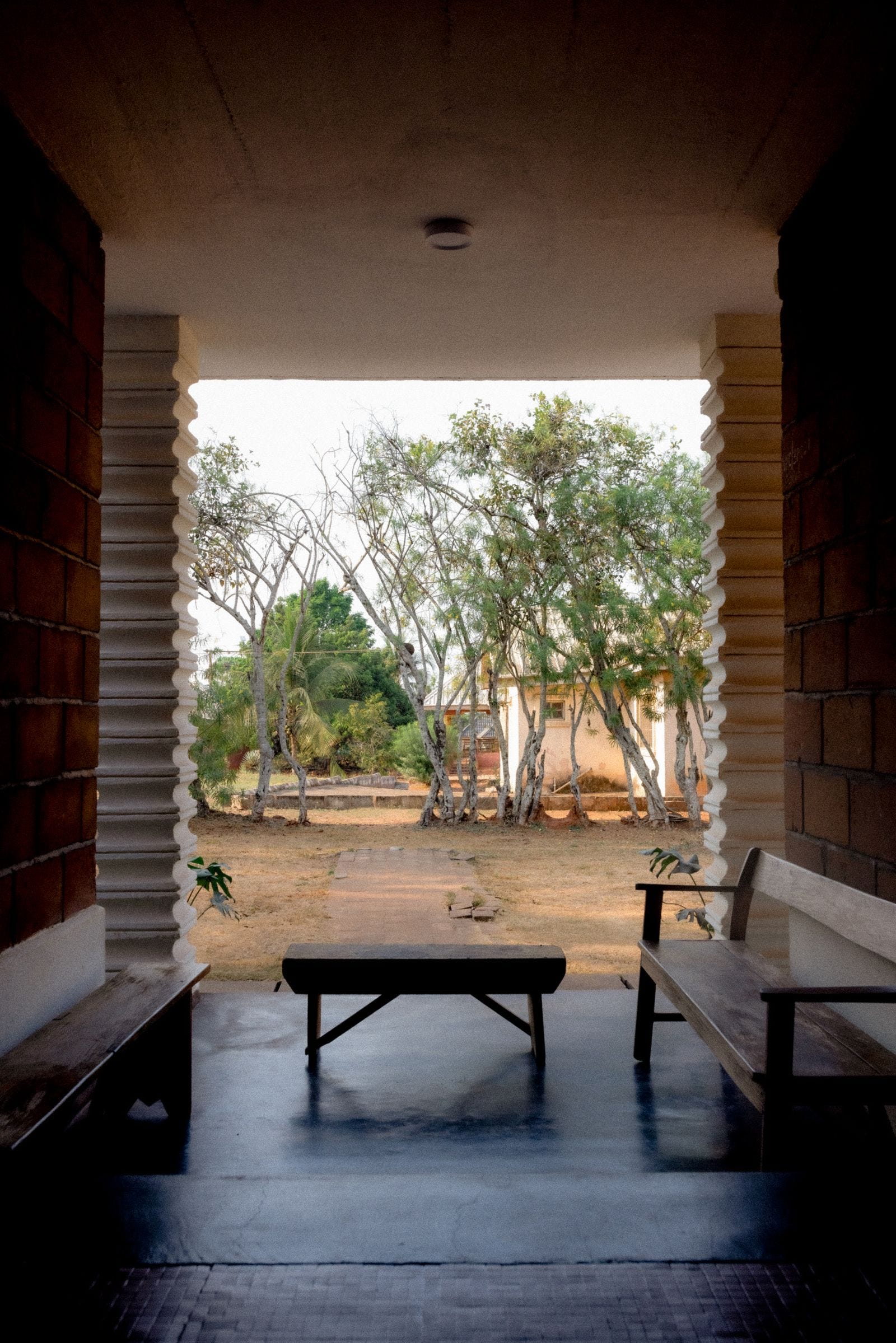 At 90 years old, Nigerian architect Demas Nwoko’s legacy extends beyond his art—it’s embedded in the walls of his rural sanctuary in Idumuje-Ugboko, a historic town in the north of Nigeria’s Delta State. To get there, one must drive through a landscape marked with red laterite, palm groves, and low, spreading trees that cast uneven shadows. Houses rise modestly from the earth, some coated in clay, others bare, revealing sunbaked brick and timber. Bold geometric patterns mark some walls, and carved wooden doors hint at the pride of their makers. Off of a curved path, Nwoko’s home comes into view.