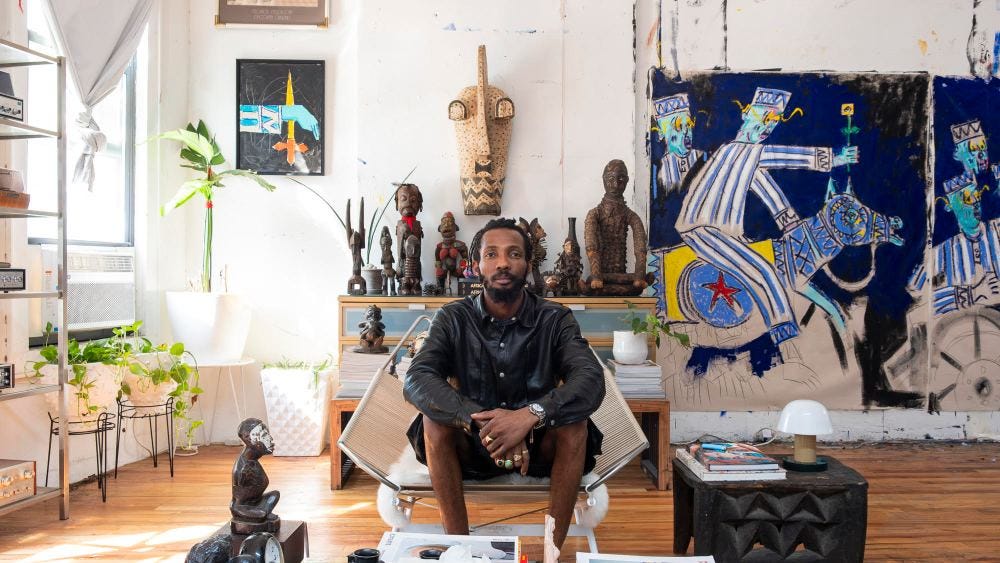 This is his first brand collaboration; the rising star on the art scene has been compared at times to Jean-Michel Basquiat, yet distinguished for the Nigerian diaspora narrative woven into his works. His biggest sale to date was in February, for $50,000. The piece, "Aeon" is now worth $70,000, at 25 percent higher, his press representative said.
