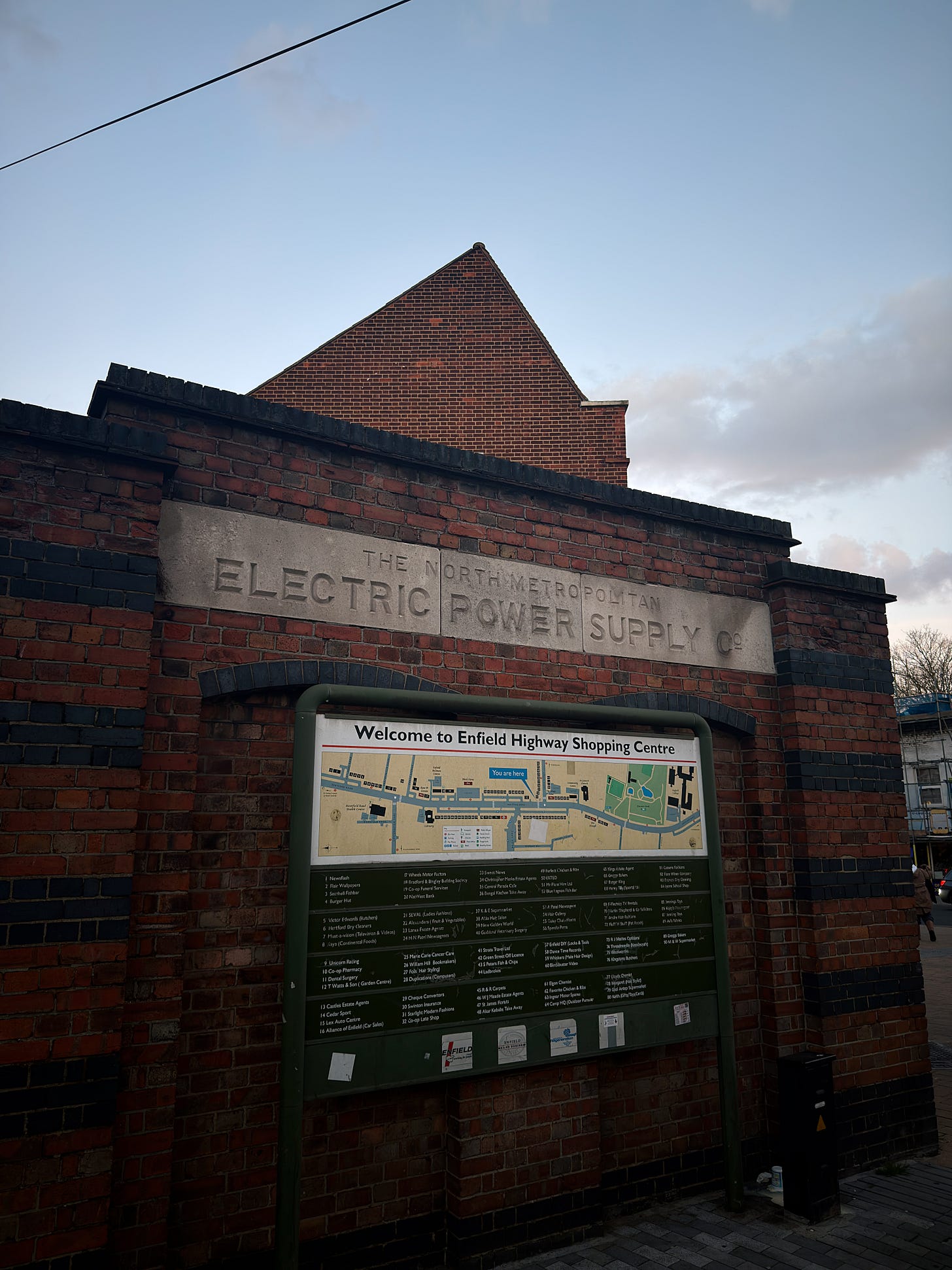 Living in a country with more than a thousand years of documented history means I am always seeing things for the first time in places I have passed for years. On Sunday I went for a haircut at the same place I have used since moving to the UK more than twenty years ago, and for the first time noticed the faded inscription on the brick wall outside: The North Metropolitan Electric Power Supply Co.