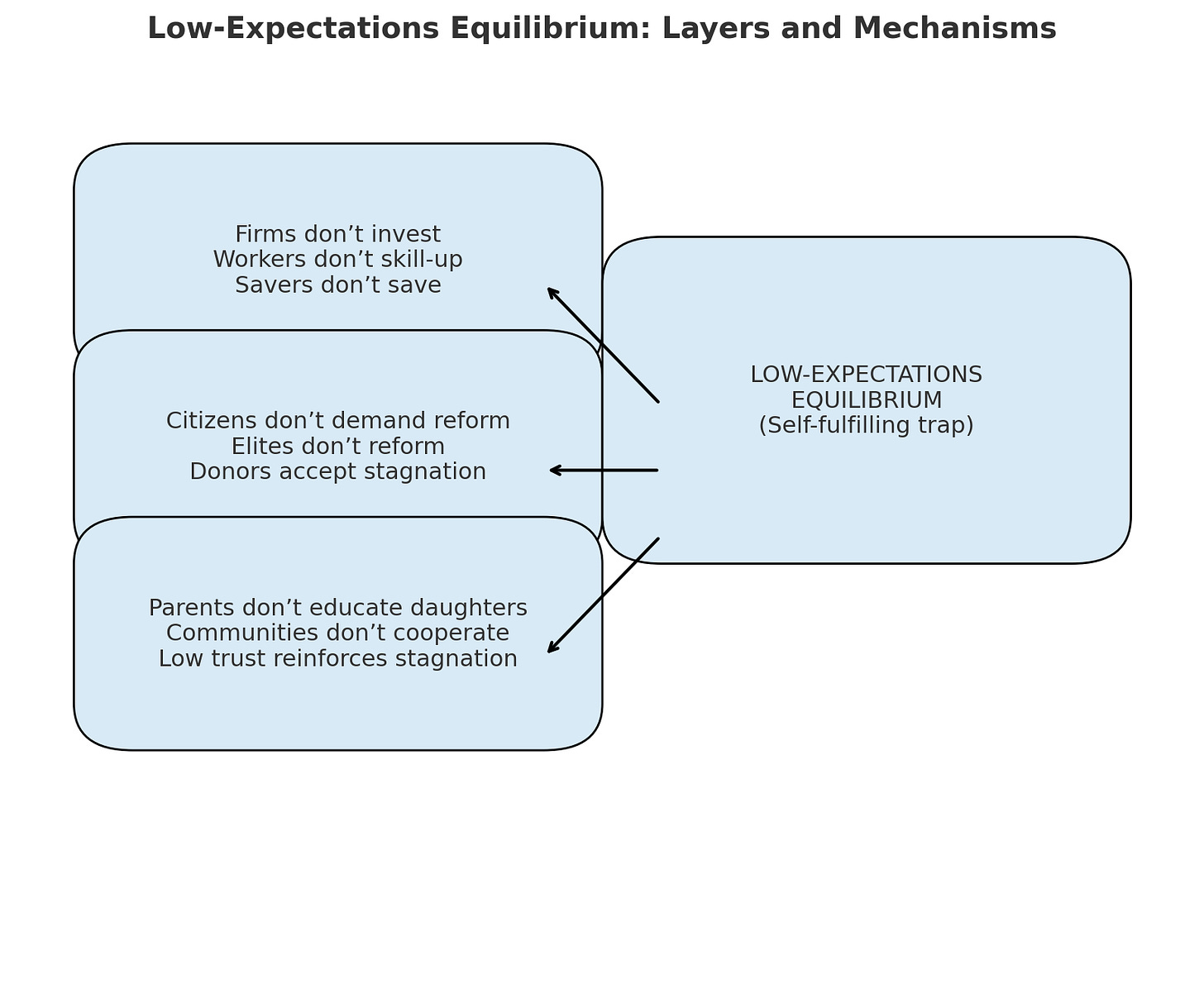 For a while, I struggled to find a framework that explained where Nigeria settled under Buhari. I found it in William Easterly’s idea of a low-expectations equilibrium.2 Under Buhari, Nigerians came to believe that growth would not happen. Because they believed this, they did not invest and did not demand reform. Economic risk-taking was constrained to isolated niches of state capture. This passivity and despair reinforced stagnation - and it is how a society gets trapped. Breaking out of it takes more than policies on paper. It takes credible commitments that change how people see the future, visible results that shift expectations, and a sustained record of delivery. Above all, people must come to believe that their efforts will give them a good shot at having a better life. That fortunes favour the brave, and not the connected. Rebuilding that belief will take more than jingles from the National Orientation Agency. It will require people to live, for years, with proof that their lives are getting better. That will be harder to build than any road, bridge, or power plant.