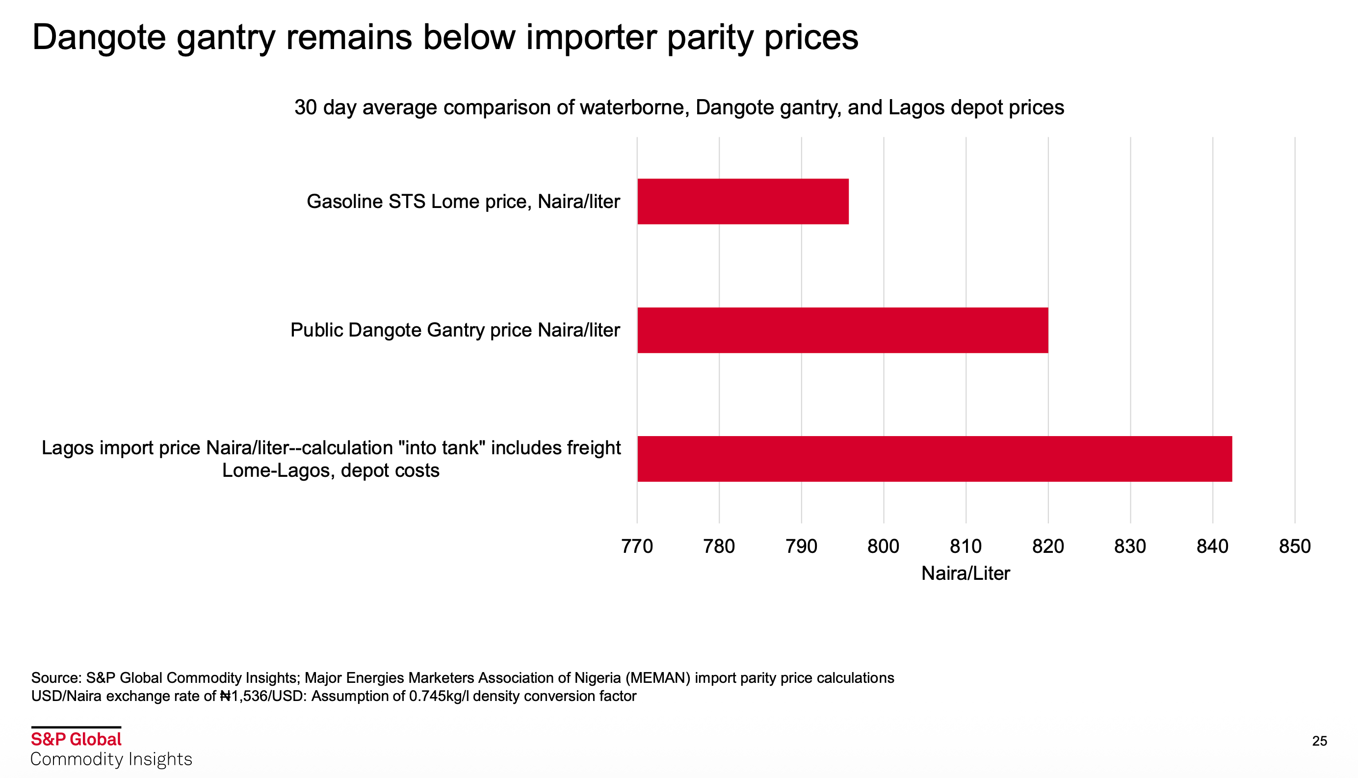 In plain terms, during the thirty-day period examined in the report, petrol could be purchased in Lomé, Togo for just under N800/litre. Simultaneously, marketers were paying N820/litre to procure the same product from the Dangote Refinery in Lagos. Naturally, transporting fuel from Lomé to Lagos incurs freight costs, which brought the landed price in Lagos to just over N840/litre. Given that Dangote’s N820 price presumably already incorporates a respectable margin, several observations warrant attention.