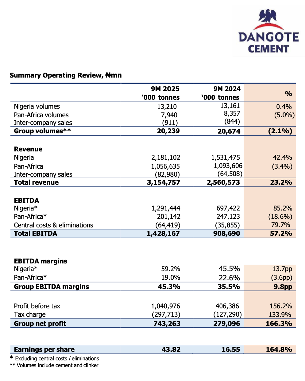 Consider the latest set of results released by Dangote Cement for the nine months of the year to September 2025: