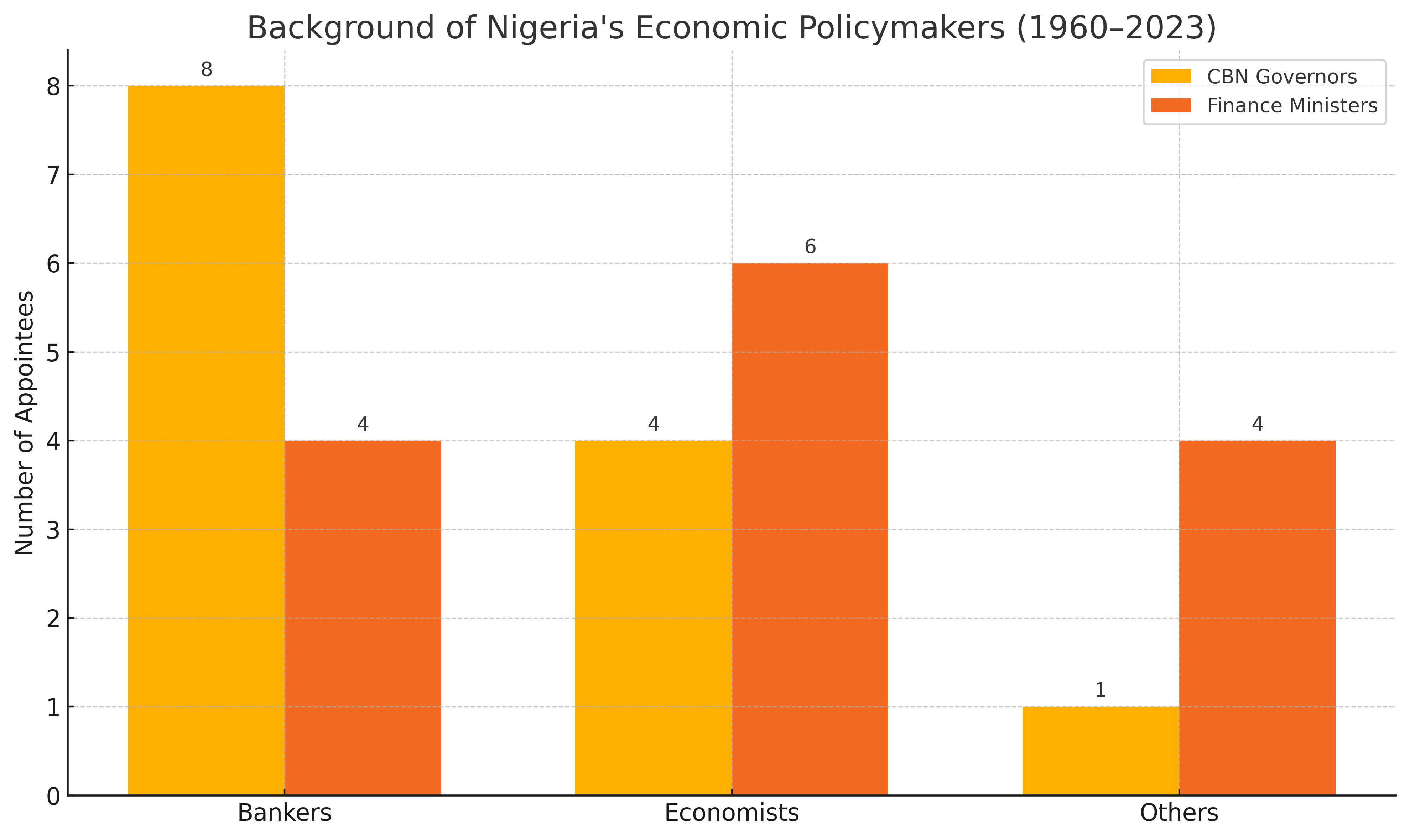 The point I am making is that economic policy, or even periods of economic reforms, have never prioritised development. There has never truly been a policy regime which showed a deep understanding that transforming the structure of the economy, and everything that comes with it, is the best way to raise incomes and reduce poverty. Perhaps this is due to the dominance of bankers in economic policy. I have no problem with bankers. Nigeria's financial sector has grown tremendously and attracts the country's best talents. Part of the job of political leadership is finding talented people who can design and execute economic policies.